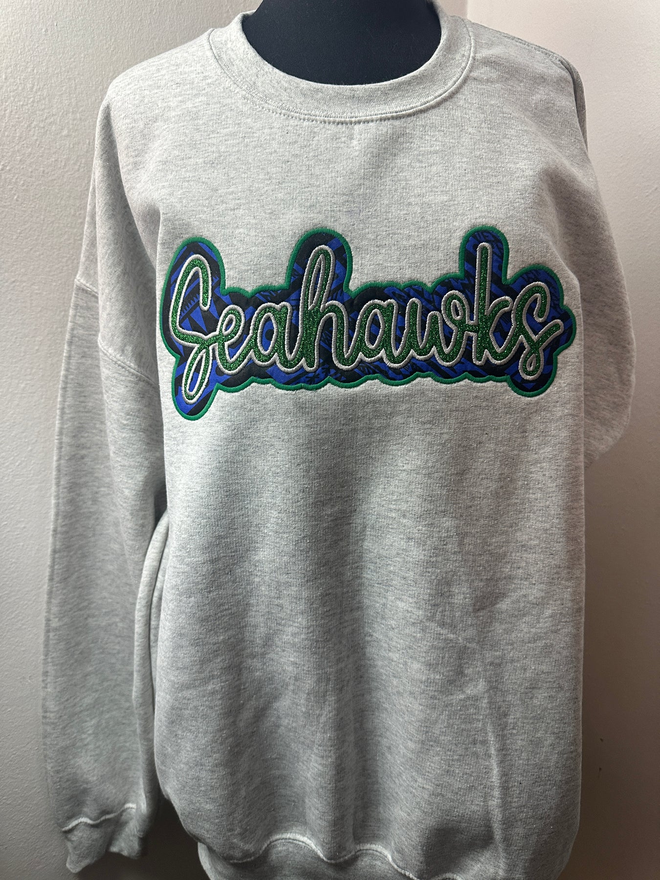 Seattle Seahawks Double Appliqué – Tribal Blue × Emerald Glitter